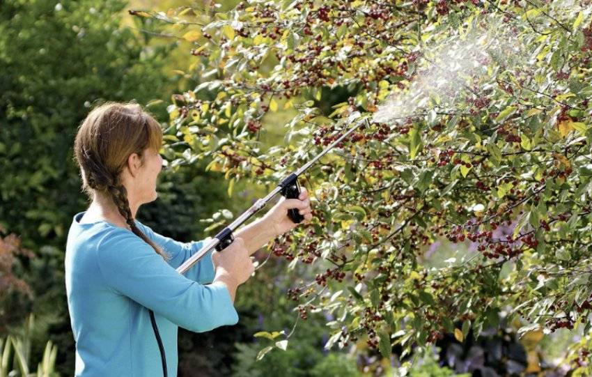 Важно! При химической и биологической обработке вишнёвых деревьев от грибковых поражений меры предосторожности обязательны. Распыление средств проводится в сухую и безветренную погоду, с использованием средств защиты (халат, респиратор и перчатки).