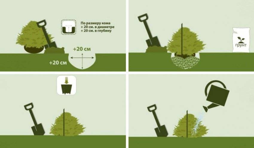 - контейнерные растения можно высаживать в любое время, а саженцы с открытой корневой системой – в марте-апреле или по осени, до наступления заморозков;