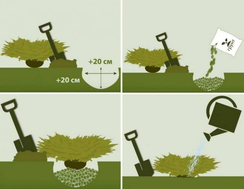 Пересаживать можжевельник, как уже говорилось, нежелательно – приживаются кусты очень плохо, чаще погибают. Если же такая необходимость есть – сначала проверьте повреждения, следы заболевания на кустике. Если они есть – лучше куст не трогать, он погибнет.