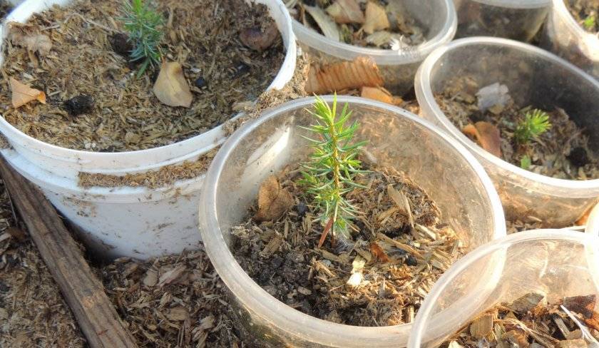 Молодые саженцы можжевельника выращивают на временной грядке до возраста 3 лет. После этого их выкапывают вместе с земляным комом и пересаживают на постоянное место.