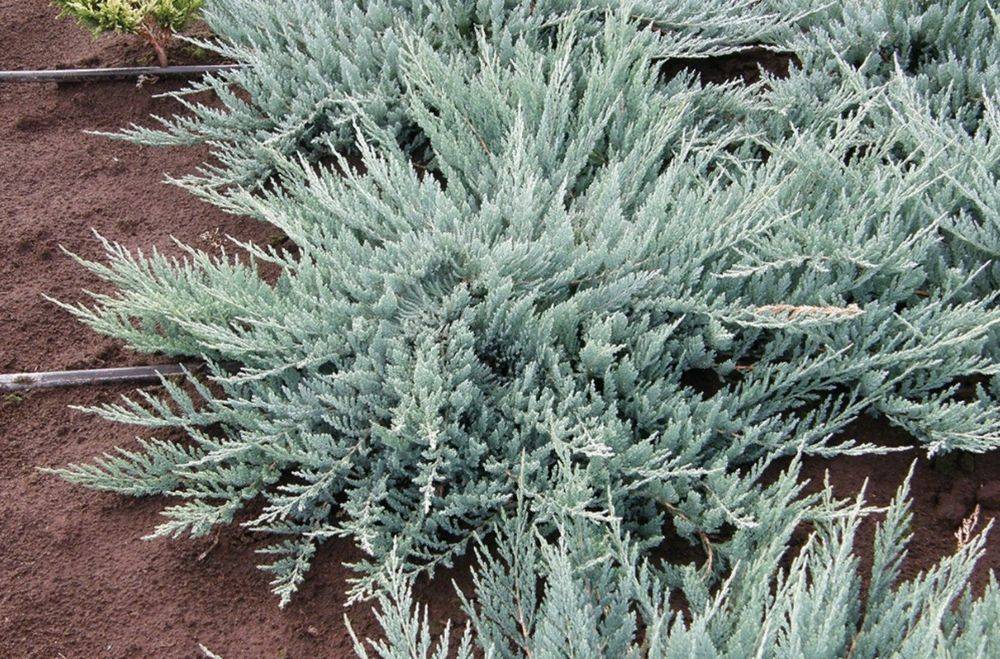 Растение небольшой величины со стелющимися по грунту побегами. Вырастает можжевельник до 0,5 м в длину, диаметр кроны при этом – 1,5 м. Когда побеги разрастаются, они начинают в равной мере покрывать землю, напоминая коврик серо-голубого окрашивания.