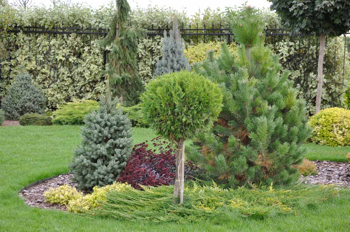 Основная задача ландшафтного дизайна — озеленение. Хвойные будут украшать сад зимой, когда других зеленеющих растений в нём не будет. Их сочетают с розами, спиреей, другими декоративными кустарниками и травянистыми цветущими растениями.