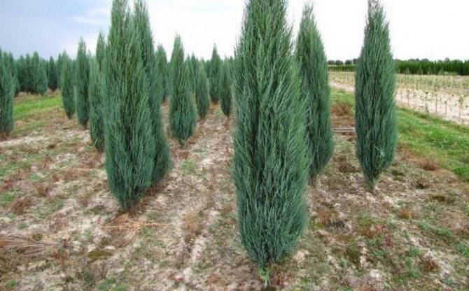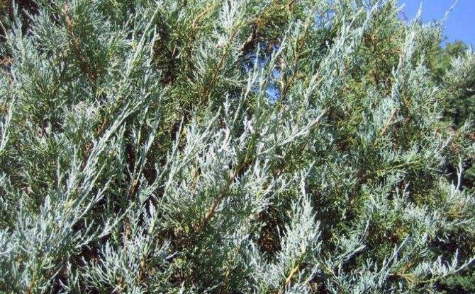 Высота хвойного растения внушительная для декоративной посадки. Второе латинское название Juniperus Scopulorum. Вырастает до 3 м, а широкопирамидальная крона — до 1 м в диаметре. Игольчатая хвоя зелёно-синего цвета длиной 12 см.