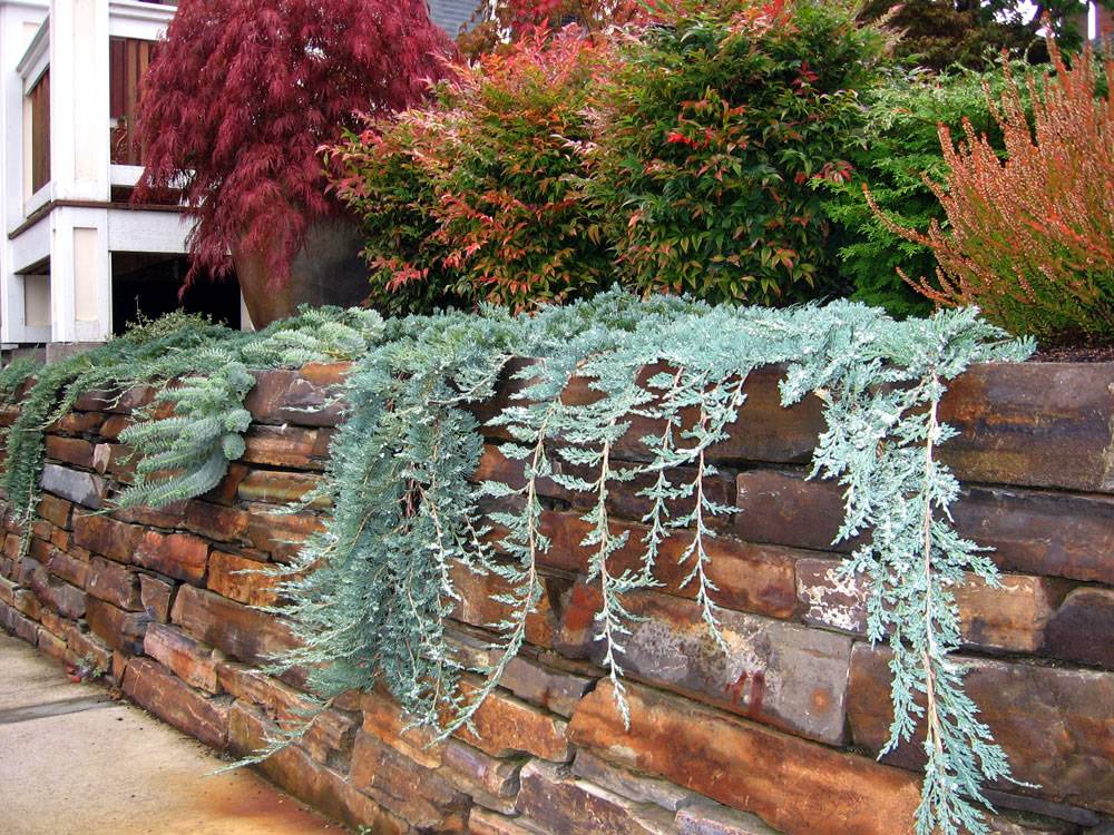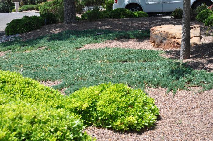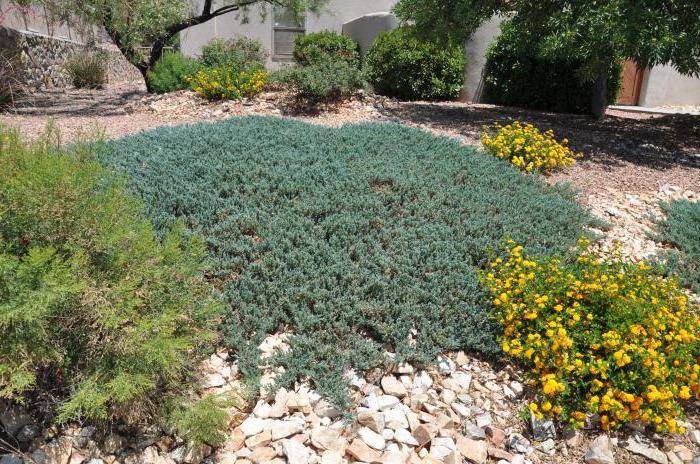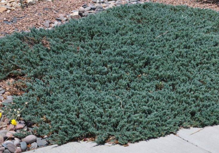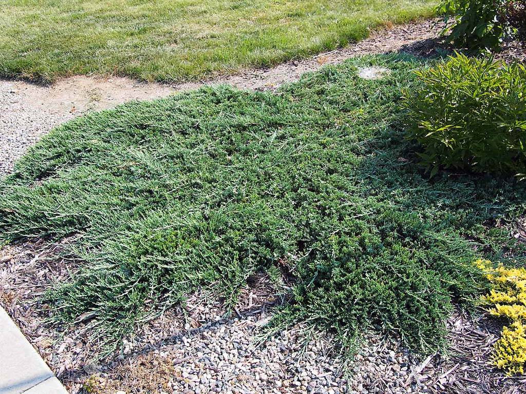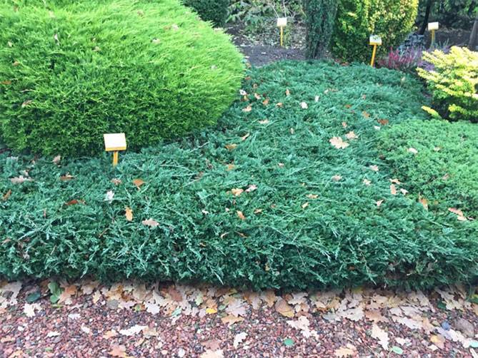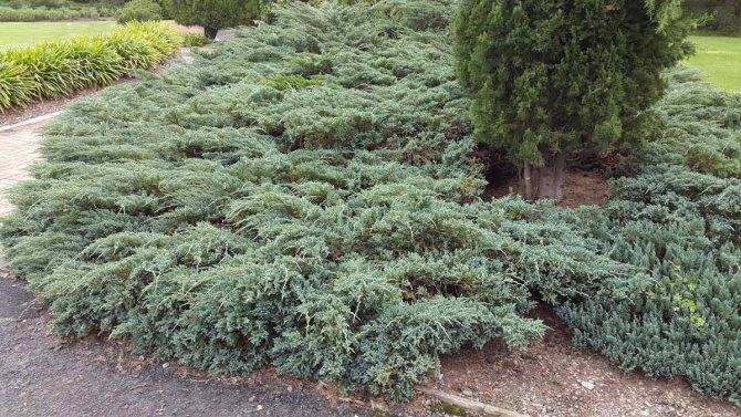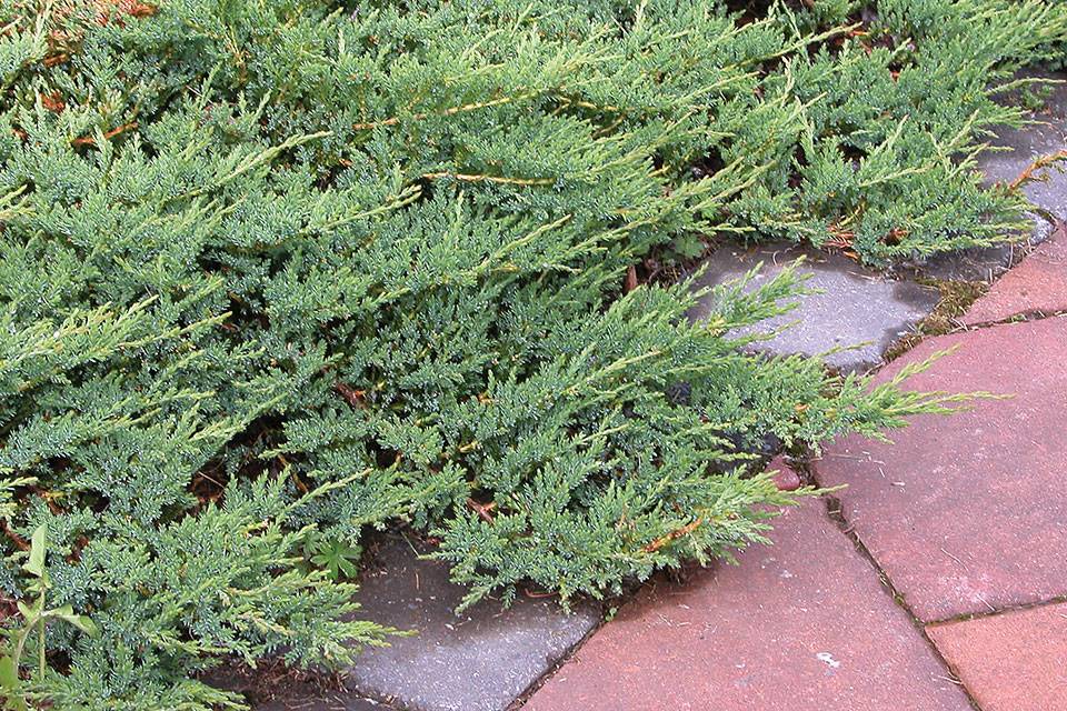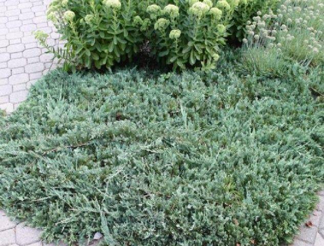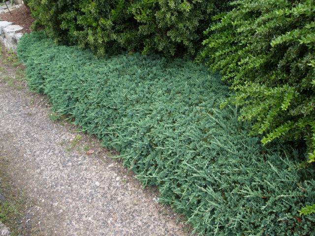 Можжевельник Вилтони замечательно смотрится в качестве обрамления невысоких бордюров, гравийных дорожек