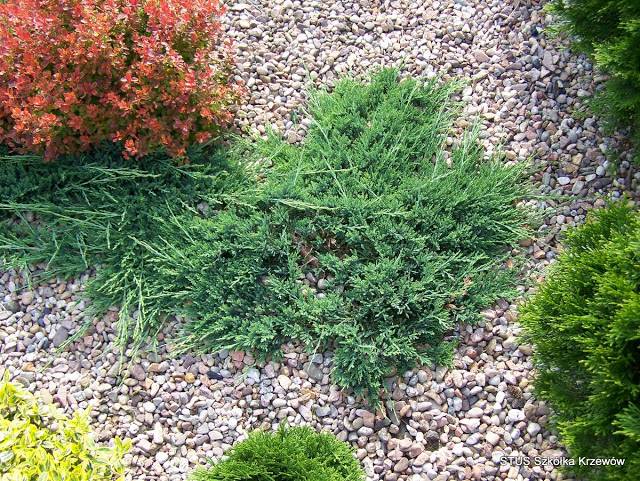 Можжевельник Вильтони прекрасно смотрится в качестве бордюра низких бордюров или гравийных дорожек.
