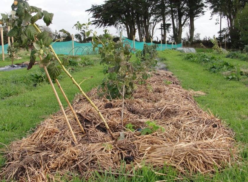 Предотвращают появление серой гнили, отражают солнечный свет, но не защищают от мороза, быстро перегнивают. Мульчирование малины соломой применяется чаще, потому что в сене находятся семена. При благоприятных условиях они начинают активно прорастать.