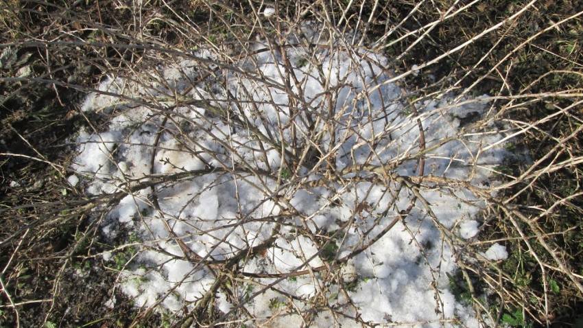 Ветки, склонившиеся к земле, нужно обрезать осенью.