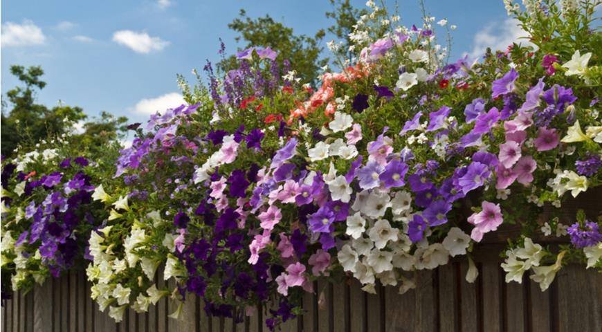 Как правило, в горшок (кашпо) высаживают кустики петуний, которые уже однажды прищипывались в «юном» возрасте, и теперь они активно выпускают боковые побеги. Отнеситесь к процедуре обрезки творчески и придайте цветку ту форму, которая вам по душе. Только от цветовода зависит, какой длины он хочет видеть побеги петунии, ниспадающие ярким и красочным водопадом.