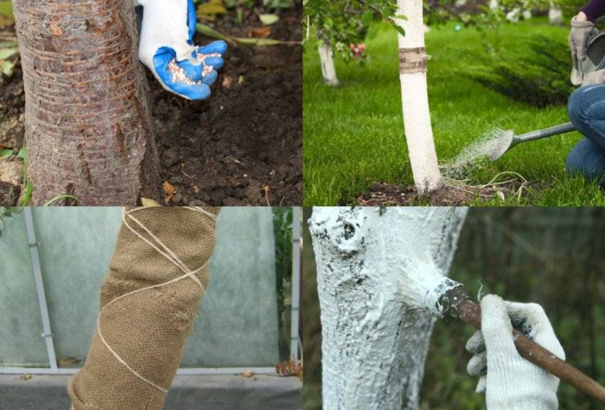 - прикрыть ствол от грызунов, обмотав его мелкой сеткой или побелив раствором извести и железного купороса.