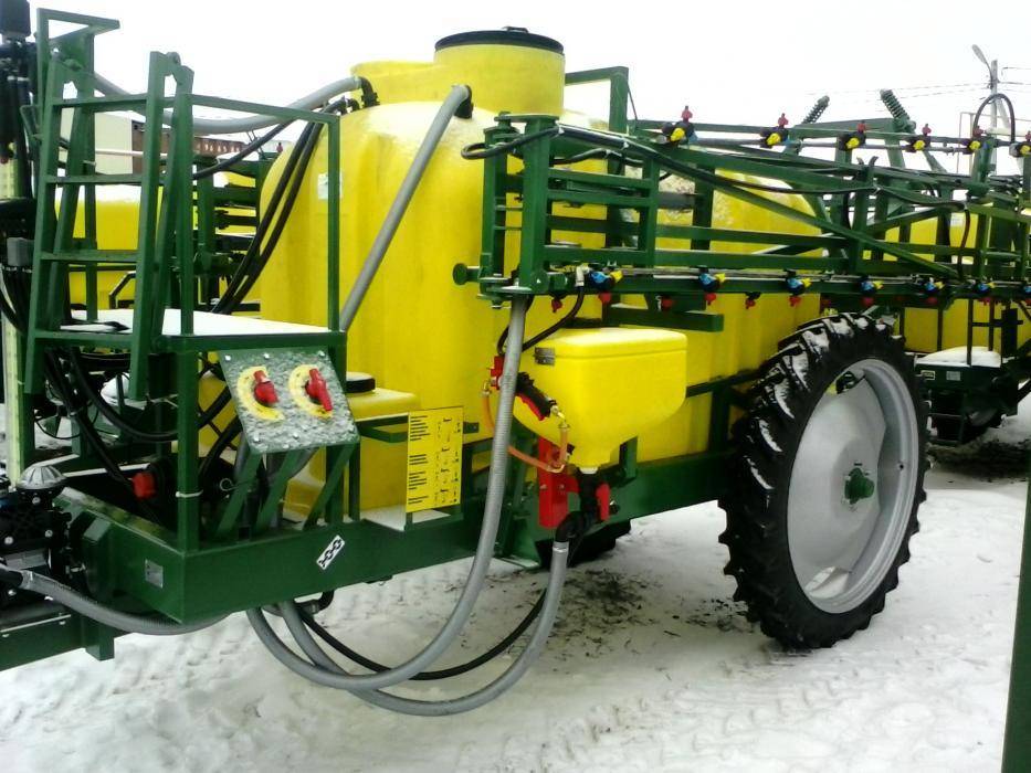- Монтируемые на навеску базового шасси – имеющие объем от 400 до 800 литров навесные механизмы, рассчитанные на обработку за проход участка поля шириной 12-18 метров. Преимущества таких агрегатов – небольшая цена, маневренность и компактность. Недостаток – низкая производительность.