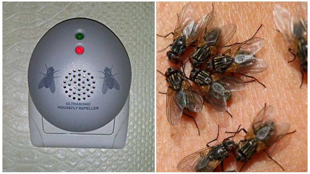 Ультразвуковые отпугиватели мух. Они эффективны в борьбе с летающими насекомыми в жилых помещениях. Особенно актуально использование этих устройств, если препараты в аэрозоле, растворы, порошки, гели вызывают аллергическую реакцию. Приборы генерируют низкочастотные звуковые волны, то есть излучают ультразвук, который отпугивает мух. Ультразвуковые отпугиватели работают от электрической сети 220 V или батареек. Также отличаются радиусом действия (зависит от производителя и модели). Устройства имеют компактный размер. Их можно включать на даче, в квартирах, магазинах, ресторанах. Первый результат работы прибора будет заметен через 10–15 минут.