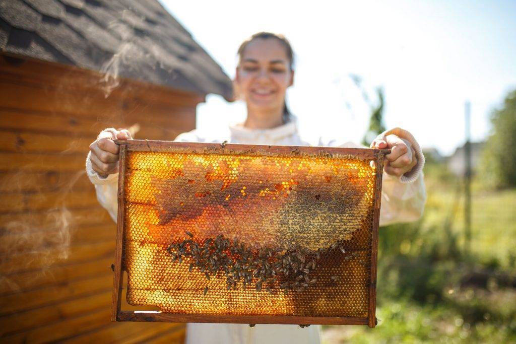 Опылённые пчёлы возвращаются в ульи и снова начинают работать через некоторое время. Когда пчела будет готова, она вылетит из улья, а уровень мёда в блоке повысится на 1. Когда уровень мёда достигнет 5, текстура улья изменится и с него будут падать частицы капающего мёда, если улей или гнездо подвешены над землёй. Если использовать ножницы на наполненном мёдом улье или гнезде, то можно получить пчелиные соты в количестве 3 штук, а если пустую стеклянную колбу, то бутылочку мёда. Любая пчела, находящаяся внутри улья или гнезда, будет враждебна по отношению к игроку, если тот будет собирать продукты из блока. Пчёлы не станут враждебными, если под ульем или гнездом на одной вертикали в пределах 5 блоков расположен горящий костёр (при этом других блоков между костром и гнездом/ульем быть не должно), или же если непосредственно под ульем или гнездом горит огонь. Следует отметить, что использование огня для добычи мёда может привести к тому, что улей сгорит.