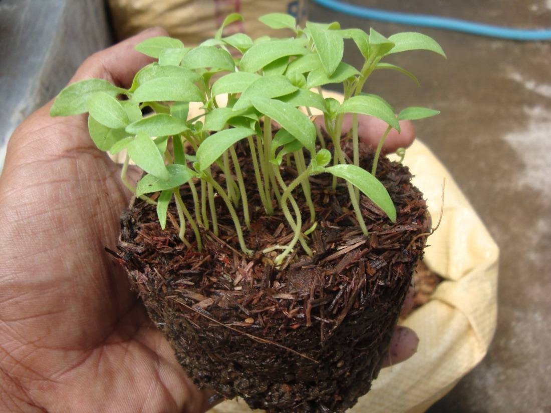 Перед пересадкой саженца готовят почвосмесь. Она должна состоять из огородной, листовой земли, торфа, песка, органических и минеральных добавок. Подготовленную почву насыпают в специальную емкость, увлажняют водой и делают в ней колышками углубления. Пересадив саженец, землю около него слегка прижимают зубочисткой. После пикировки росток поливают водой и ставят в теплое помещение, чтобы он прижился.