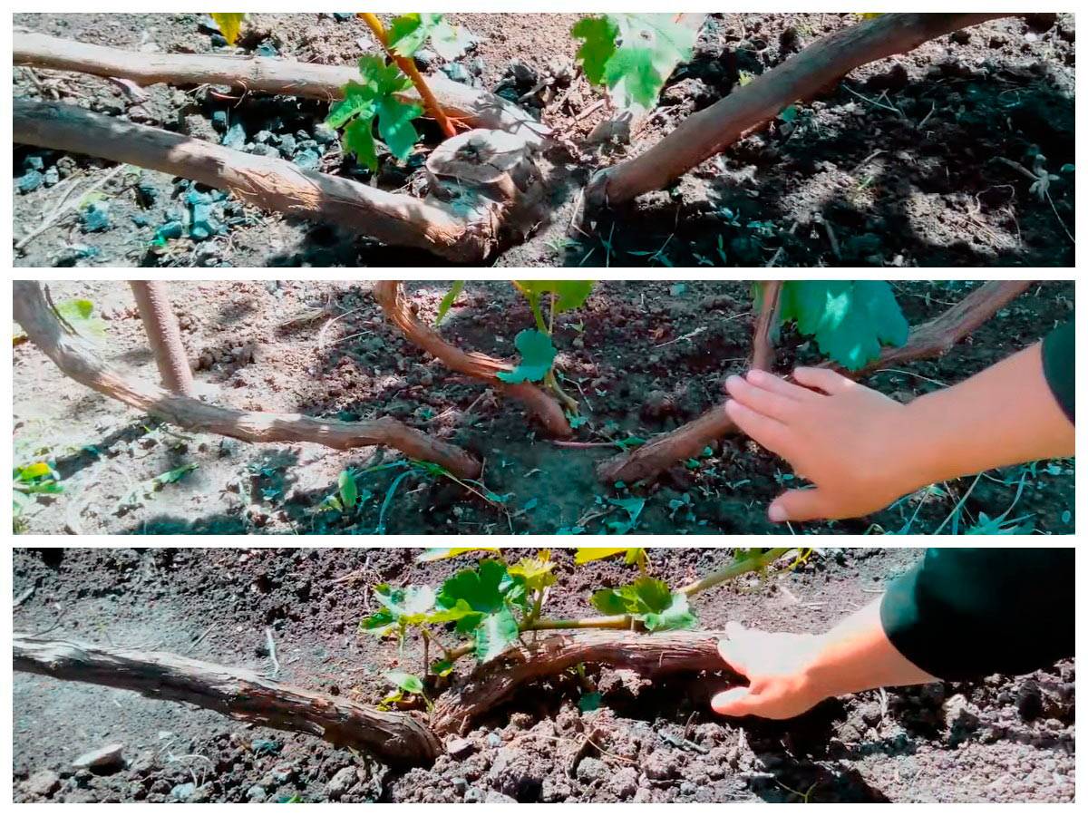 Побеги следует выбирать такие, которые я без труда смогу на следующий год уложить горизонтально на первую или вторую проволоку. Осенью, когда однолетние лозы отплодоносят и вызреют, я оставлю на каждом из рукавов только выбранные мной побеги, а лозу после них полностью обрежу. Оставленные побеги я весной положу на проволоку и буду ждать с них урожай.