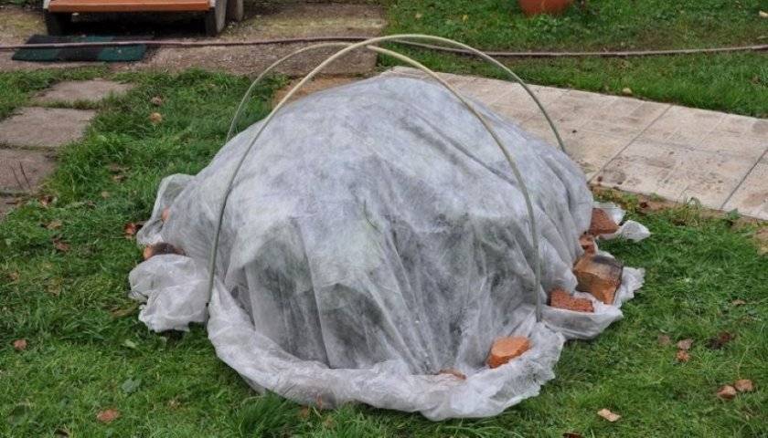 - накрыть растение белым агроволокном (можно обмотать несколько раз).