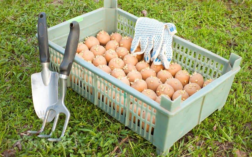 Если вдруг почва к этому времени не готова или не позволят погодные условия, подготовленные клубни помещают в более прохладное место. Это предупредит их перерастание.