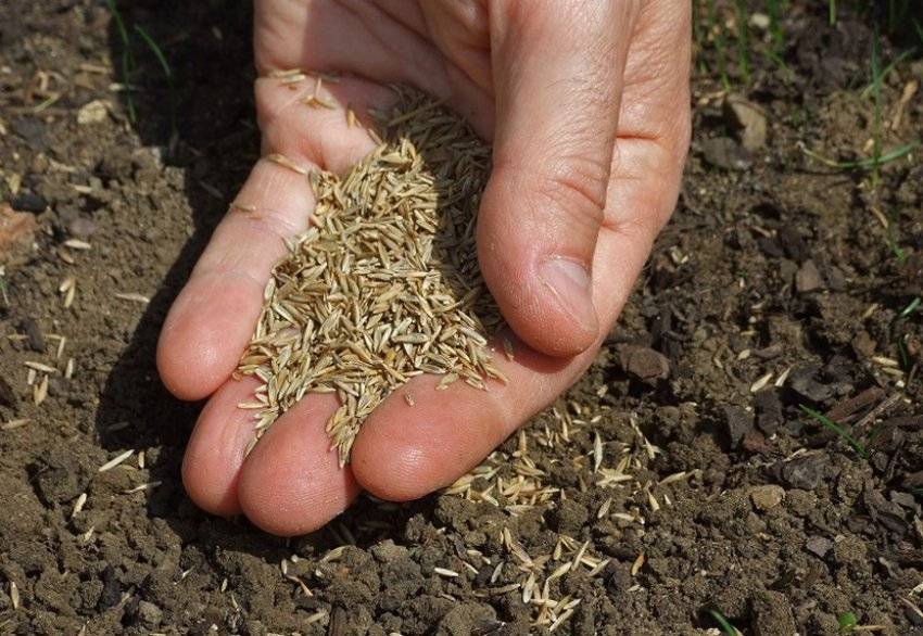 Проводится посев культуры в безветренную погоду, так как семена травы очень маленькие