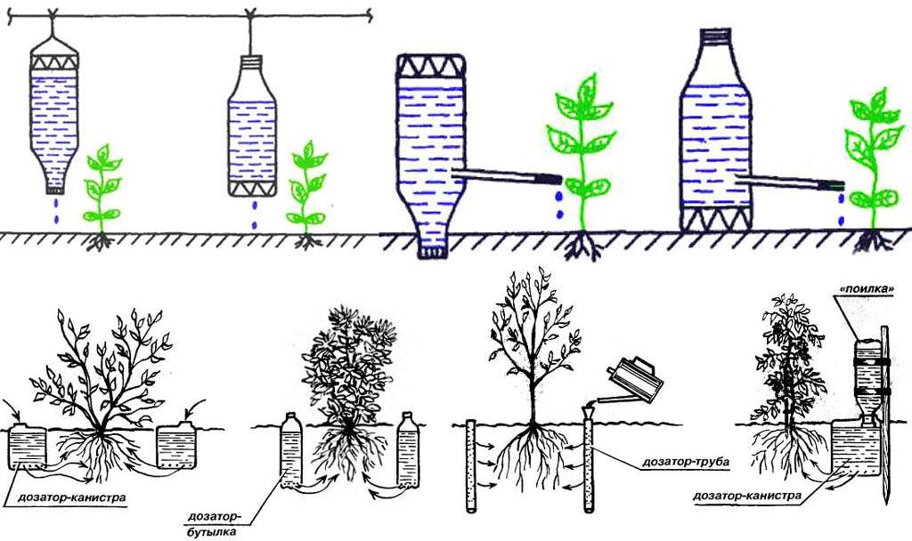 Полив с помощью пластиковых бутылок