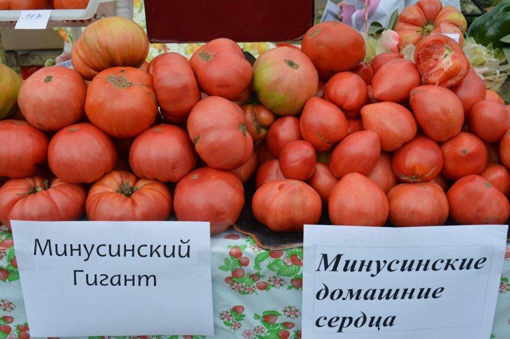 Томат минусинский — один из «прародителей» разновидностей сорта. Характеристики этого помидора считаются эталонными для выведения производных сортов. Плоды достигают до 1кг. При созревании имеет насыщенный малиновый оттенок и яркий вкус. Недозревшие плоды отличаются небольшой кислинкой, однако тоже используются для приготовления блюд .