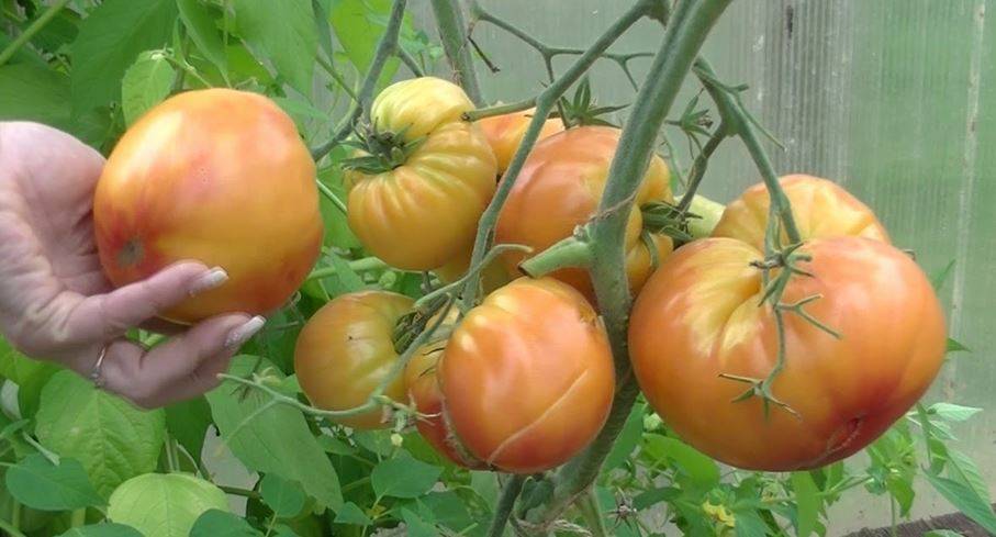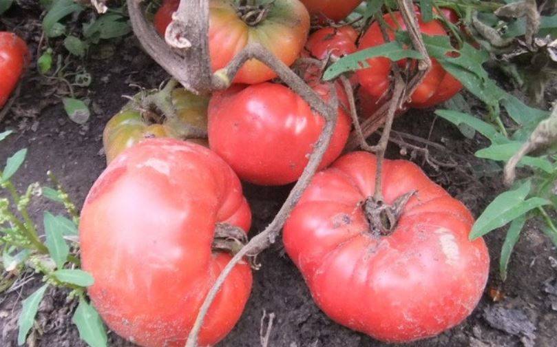 Вес плодов варьируется от 350 до 700 г. Цветовая гамма красно-розовая, в разрезе имеются оттенки желтого цвета. Формирование куста лучше осуществлять в 1 и 2 стебля.