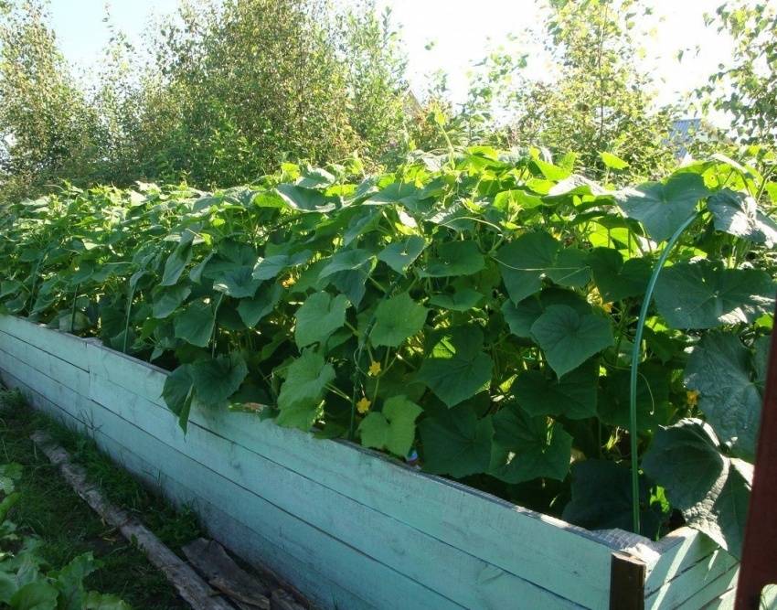 Некоторые огородники берут доски для коробов высотой 0,2 м. Но при посадке стоит учитывать, что корневая система огурцов растет в глубину на 30-40 см. Также сильно разрастается в ширину. Поэтому для правильного ее развития надо обеспечить растениям достаточно пространства. Если конструкция не имеет нужных размеров, можно с ее помощью вырастить рассаду, а потом пересадить на другую грядку.