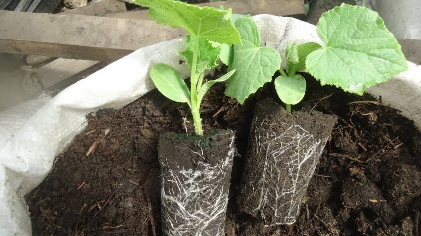 - Высадить рассаду. В отверстия, которые были прорезаны для растений, посадить огурцы.