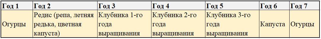 Чтобы обеспечить земле качественную продолжительную передышку, на месте грядок из-под огурцов специалисты рекомендуют периодически устраивать клубничную «плантацию» (см. таблицу 3).