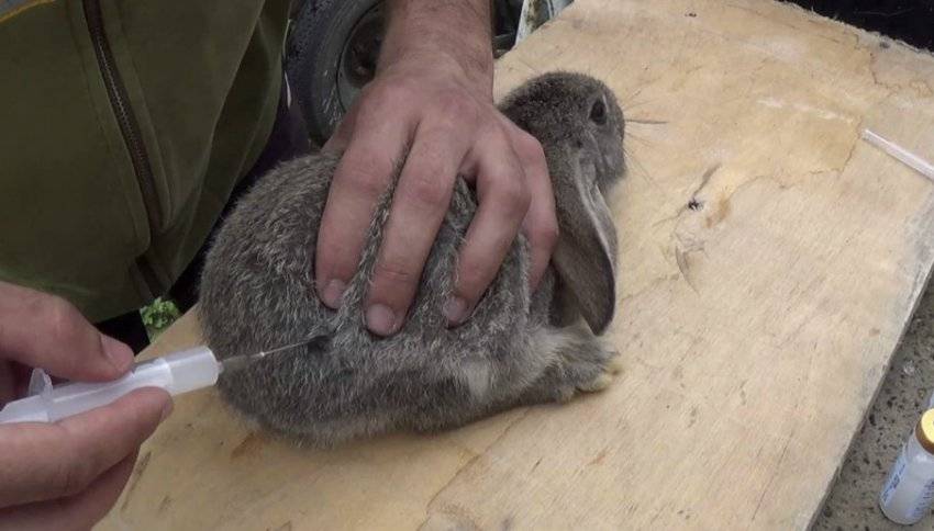 - Необходимую дозу препарата отмерить в шприц и залить кролю в рот.