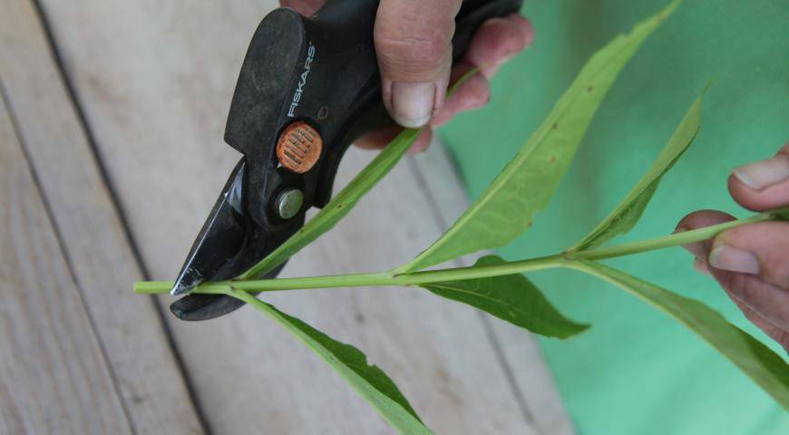 - Заготавливать черенки в пасмурную погоду. Если на улице жаркий день, нарезку стеблей или листьев лучше в тени.