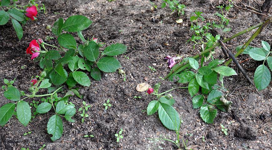 За новыми кустами роз нужно ухаживать: вовремя поливать, регулярно вносить органические и минеральные удобрения.