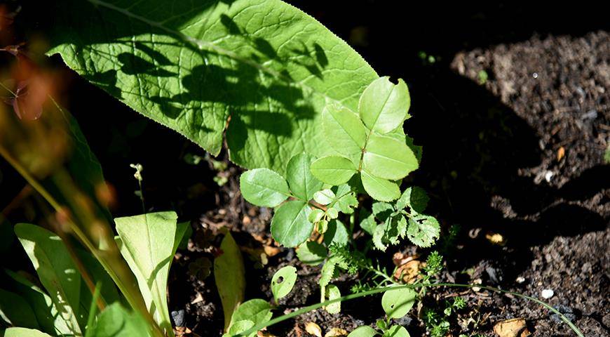 Осенью я молодые розочки решила пересадить. Для этого мне понадобилась острая, «обеззараженная» лопата. Её лезвие я протёрла одеколоном. Сначала нужно немного разрыть траншеи и усмотреть — где находится пучок корней, чтобы потом обрезать, не повредив корней. Можно отсоединять укоренившийся побег секатором, но мне хватило одного резкого движения лопаты — и побег стал отдельным растением.