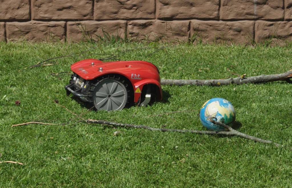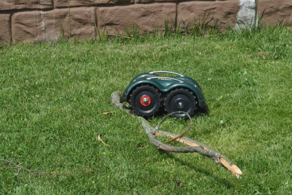 Отметим только, что мелкие прутики и шишки измельчаются почти также, как и трава. Детские мячики просто роботами просто катаются по траве. Маленькие газонокосилки заехать на толстые палки не смогли и тем самым себя обезопасили. Robomow RS612 вообще все нипочем — благодаря своей юбке бампера до земли по излишне толстым палкам он скользит и допускает критического попадания инородного тела в ножи. Небольшой казус случился только с Caiman L200R: крупная палка неудачно попала под косилку и заклинила нож. После извлечения, что называется «палки из колеса», косилка продолжила работу как ни в чем не бывало. Поэтому общая рекомендация от нас: следите за предметами на газоне, для некоторых машин они представляют угрозу.