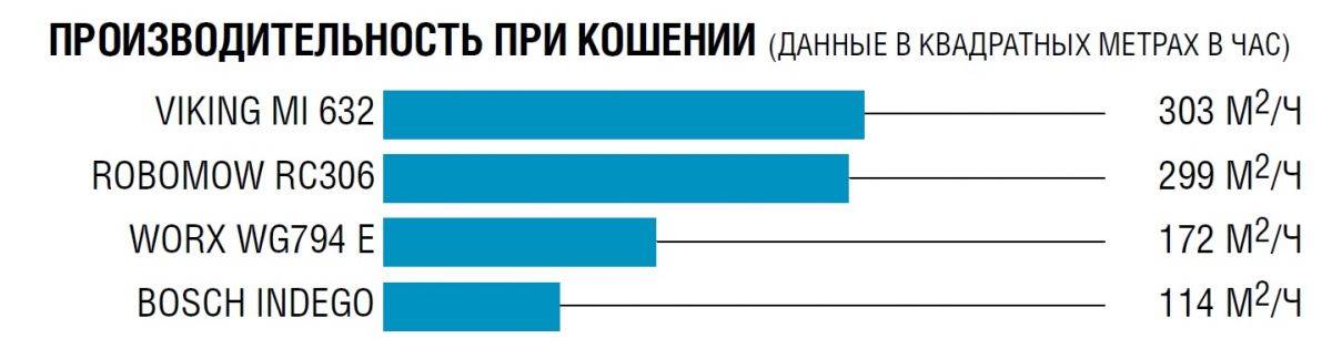 Производительность при кошении. Viking наиболее востребован в парках, Robomow отлично чувствует себя на земельных участках у частных домов, в то время как Worx и Bosch охотнее «резвятся» в небольших садах при загородных коттеджах.