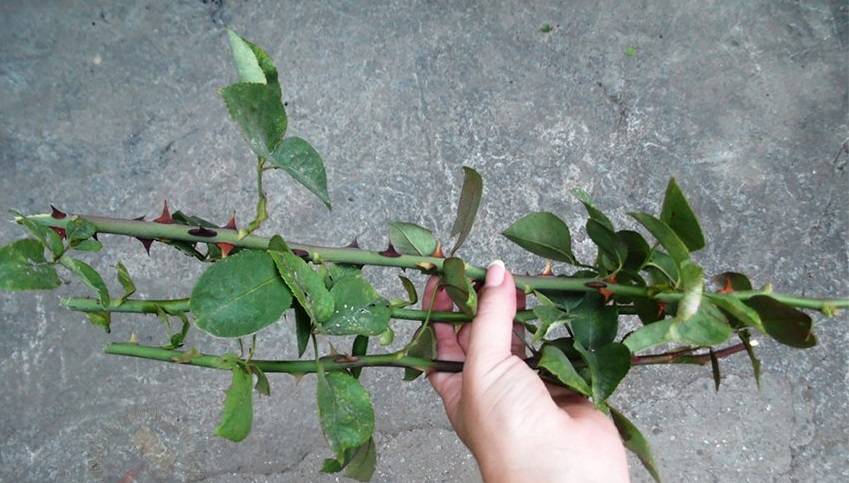 Если на стебле есть зеленые листья, их удалить, также убрать все шипы.