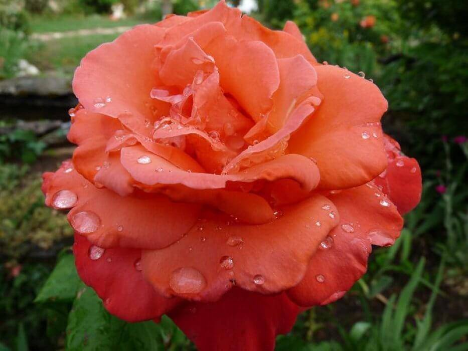 Роза сорта Kimono – пышная, эффектная роза с множеством нежно-розовых лепестков с более яркими лососевыми краями. В зависимости от количества солнечного света края лепестков могут быть красными и лососевыми.