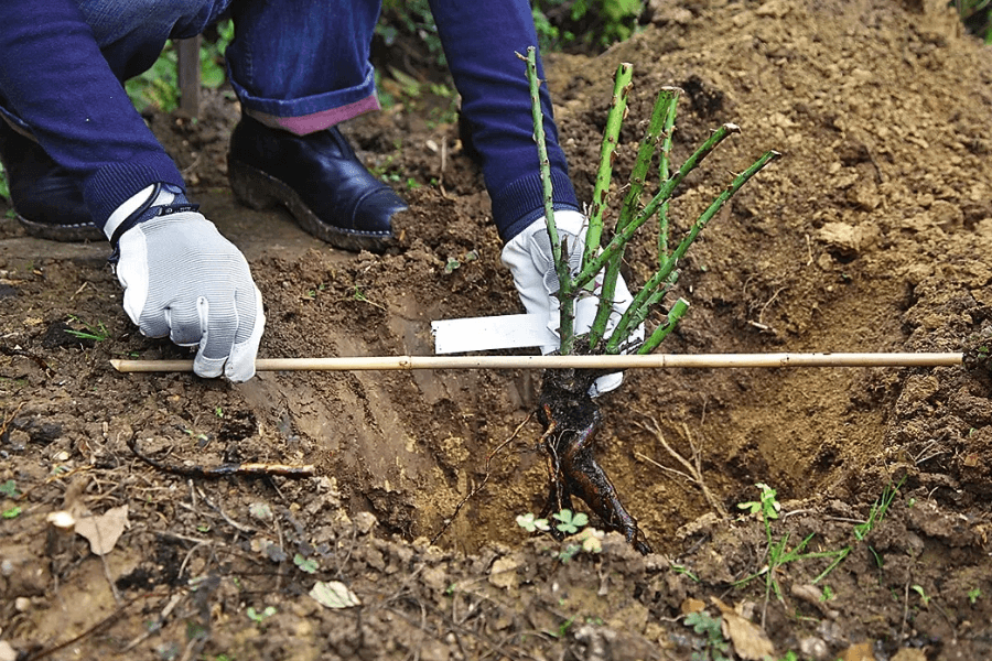 - Корневая система розы очень чувствительная, поэтому остро реагирует на органические удобрения появлением ожогов и нарушением питания. Такие растения плохо приживаются и могут погибать. Для высадки растений в грунт необходимо выбрать ясный день, без дождя. Много внимания стоит уделить углублению, а также особенностям высадки.