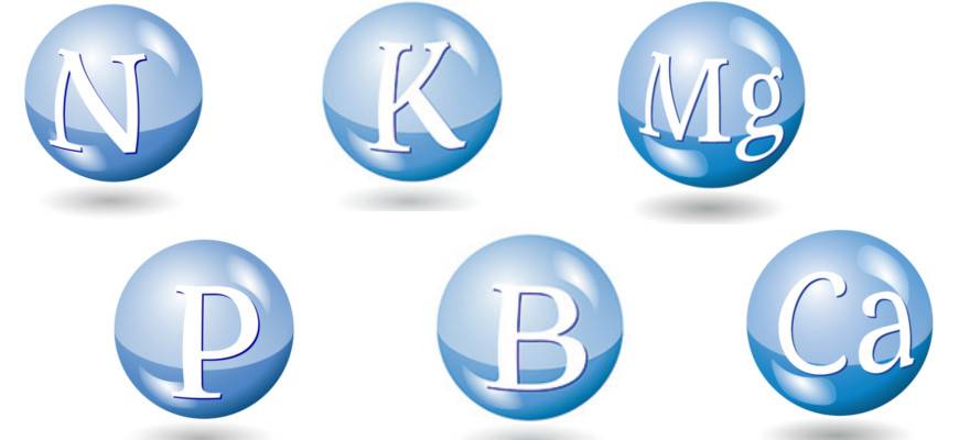 Недостаток калиция проявляется прежде всего на молодых побегах: их верхушки слабеют и отмирают, листья становятся белесыми. Старые листья могут желтеть. Побеги утолщаются, опадают завязи. У кустарников заметно угнетение роста. Профилактика дефицита кальция – своевременное раскисление почвы и внимательное отношение к внесению калийных удобрений, так как избыток калия в почве препятствует усвоению кальция.