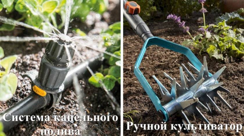 Для посадки и ухода за данной растительной культурой на индивидуальном участке понадобятся сельскохозяйственные инструменты — лопаты, грабли, сапы. Чтобы упростить задачу перекопки междурядий и рыхления, можно приобрести культиватор. Для орошения посадки ежевики лучше установить систему капельного полива. Причём установку следует сделать до посадки саженцев.