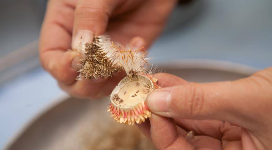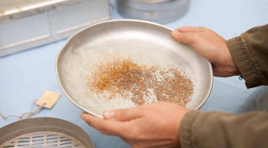 - Подсохшие семена самостоятельно падают на подстилку, оставшиеся головки требуется обмолотить вручную.