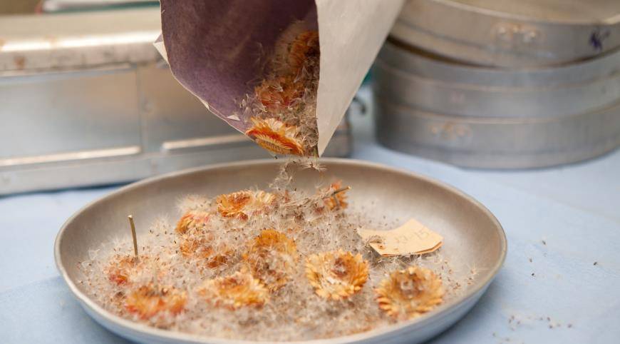 При ручном сборе срывают только крупные созревшие головки, складывают в мешочки или пакеты, подвешивают на 1 неделю в сухом проветриваемом помещении со сквозняком или под навесом. Семена оберегают от попадания прямых солнечных лучей.