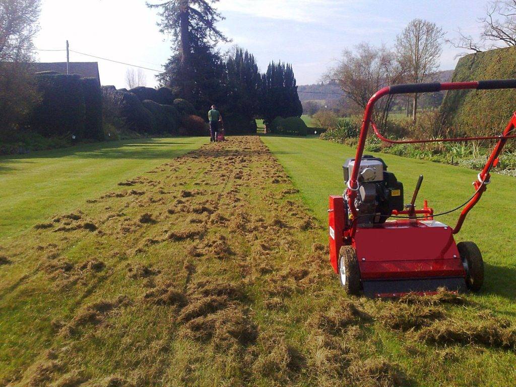 Перед началом обработки вертикуттером траву скашивают, оставляя три сантиметра. Далее участок обильно поливают и проходят граблями.