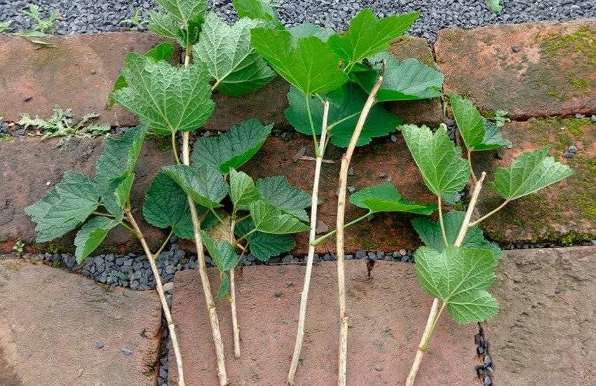 Для посадки черенков выделяют отдельную грядку с удобренной увлажнённой почвой. Черенки углубляют в грунт так, чтобы сверху оставалось пару почек. Размещают их под наклоном, соблюдая расстояние между посадками в 10–15 см, а между рядами — около 50 см. До весны грядку накрывают, используя спанбонд или обычный тёмный полиэтилен. К весне материал укоренится, а к следующей осени из него вырастут полноценные кустики, которые можно будет рассаживать на постоянные площадки.