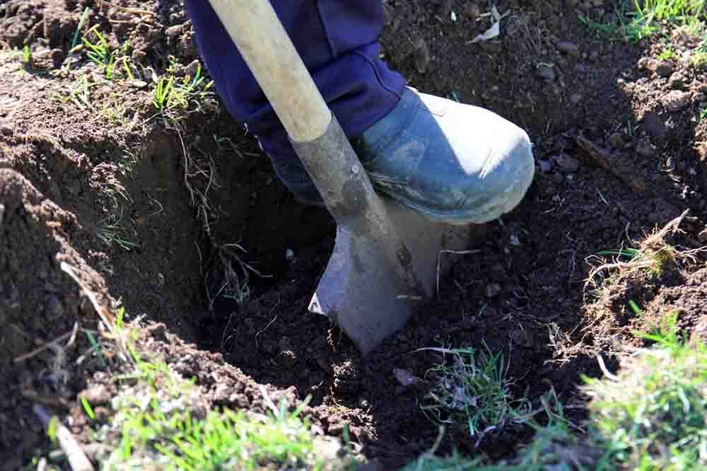 - Разровняйте землю, уберите сорняки и перекопайте землю на штык лопаты вглубь.