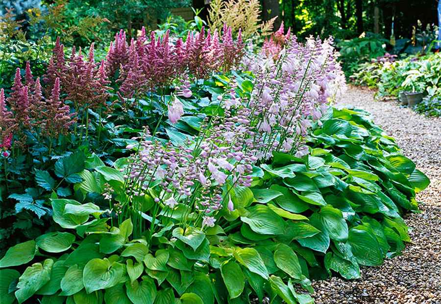 - С чем сочетается. В случае хосты очень важным фактором при выборе места на клумбе является ее совместимость с другими растениями. Для полутенистого участка лучше всего подойдут комбинации хосты с барвинком, гейхерой, горлянкой, примулой или папоротниками. Очень эффектно хоста будет смотреться совместно с цветком астильба.
