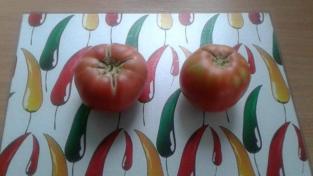Томат имеет плоды яркого малинового цвета, в большинстве случаев крупные. Имеют ровную форму почти идеального круга, снаружи поверхность характеризуется легкой ребристостью. Вес плода удивляет своими размерами и в среднем достигает 500 грамм, но бывают и более крупные плоды. Мякоть мясистая отличается хорошим вкусом, и помидор почти не имеет семян.