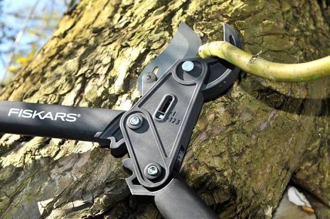 Под маркой Fiskars выпускается универсальный многофункциональный сучкорез, который эффективно обрабатывает разросшиеся кустарники и кроны деревьев, а также срезает сухие и поврежденные ветки. К таким инструментам обычно крепят всевозможные дополнительные приспособления, такие как садовая пила или емкость для сбора плодов. Сучкорез сконструирован таким образом, чтобы можно было доставать и низко растущие ветки, и растущие на высоте, при этом обходясь без использования лестницы и стремянки – вертикальный диапазон устройств достигает 4 метров.