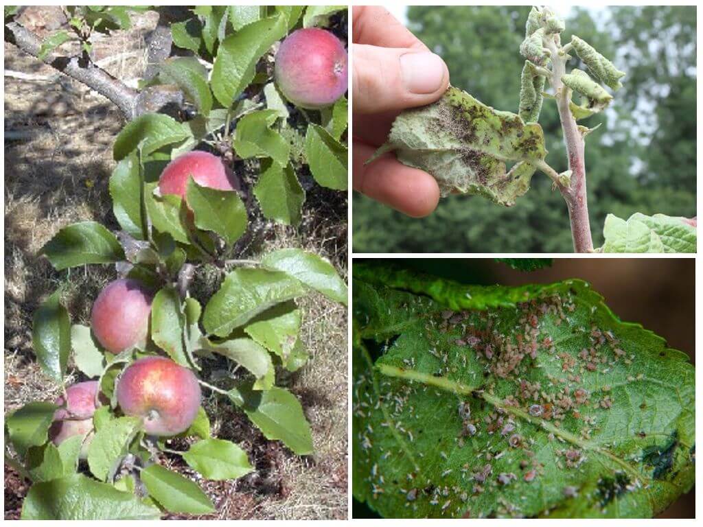 Яйца, отложенные самкой, зимнее время переносят спокойно и весной, когда температурный режим нормализовался, появляются личинки. Для сада они представляют большую угрозу. В качестве питания они используют сок молодых листьев, почек и побегов. Если условия благоприятные, через 2 недели они превращаются в самок, которые выводят новое поколение тли. На листьях яблони чаще всего появляются следующие виды тли: