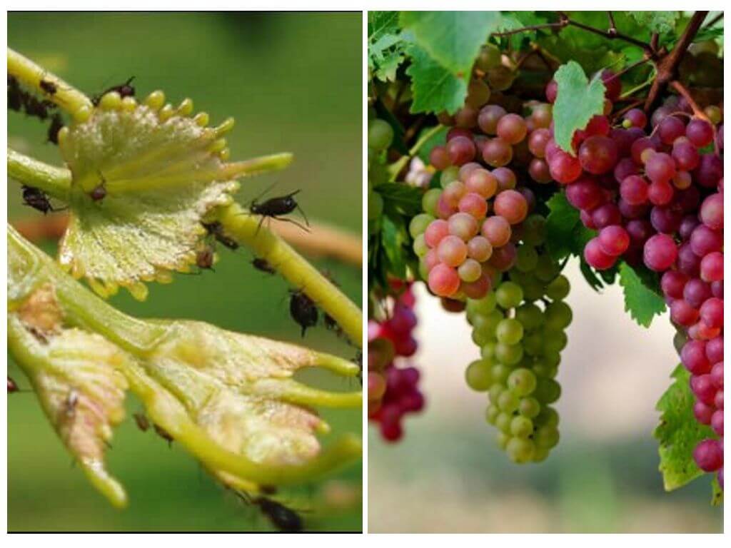 Наиболее распространенным вредителей виноградников является галловая либо зеленая тля. Изначально насекомое паразитирует в нижней части корневой системы, постепенно перемещается на листья.Остановить размножение вредителей может холодная дождливая погода. В остальных случаях самка непрерывно откладывает яйца, из которых за 10 дней появляются личинки – мелкие жучки.
