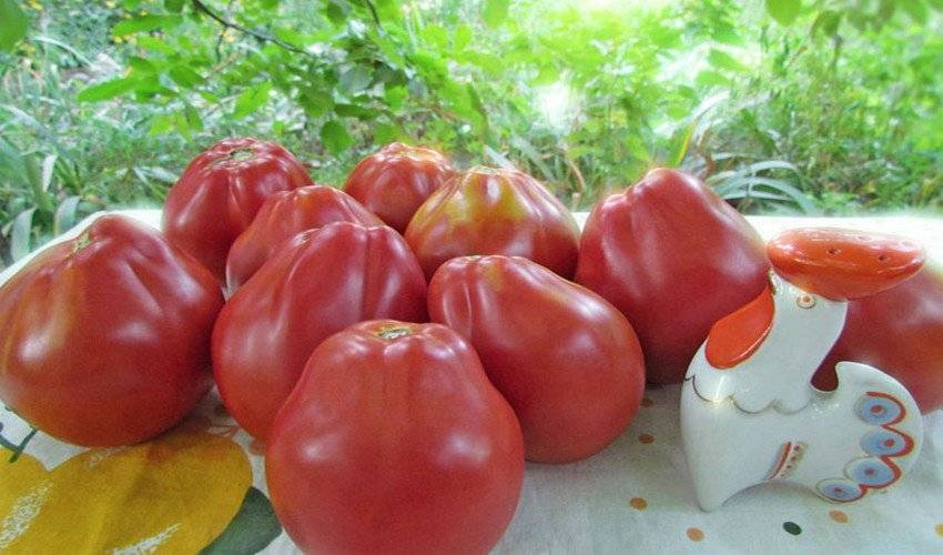 - Красноплодный сорт считается лучшим для консервирования и переработки. У него прекрасный вкус, сочетающий сладость с небольшой кислинкой и приятный томатный аромат. Даже у вызревшего плода возле плодоножки часто остаются зеленоватые или жёлтые пятна. Этот помидор высокоустойчив к фитофторозу.