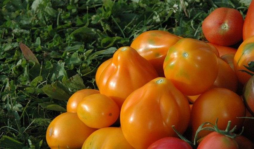 - Томат грушевидной формы, ребристый.